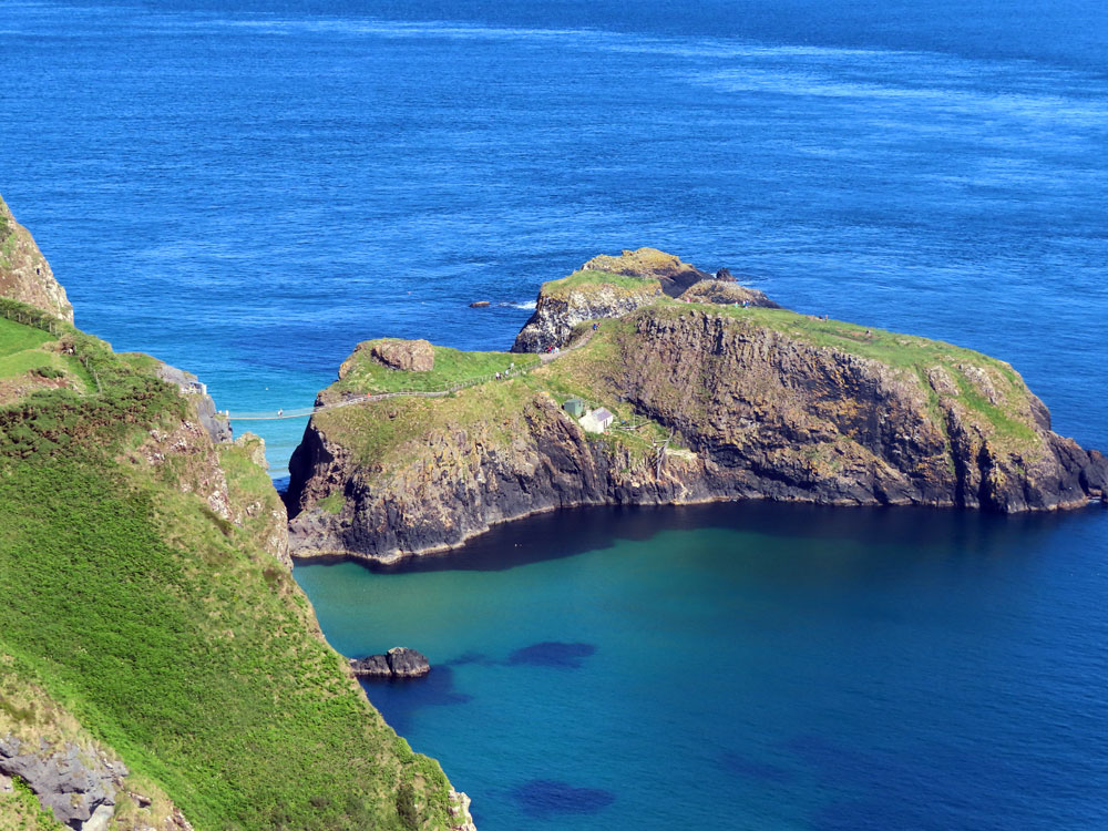We set out at 9 am on an eight hour tour to Dunluce Castle and the Giants Causeway. The bus was full and we had a good (Catholic) guide, Adrian who spoke for almost the whole journey that was quite biased and did a lot towards American connections of Ulster; There was also a driver Alan with whom David chatted quite a lot. We first had a photo stop along the Antrim Coast and then stopped at Dunluce for about an hour in gorgeous weather. It was odd that we did not cover much of the Antrim Coast Road, instead driving north from Belfast by the inland road, and not touching the coast until we were almost at the Giants Causeway