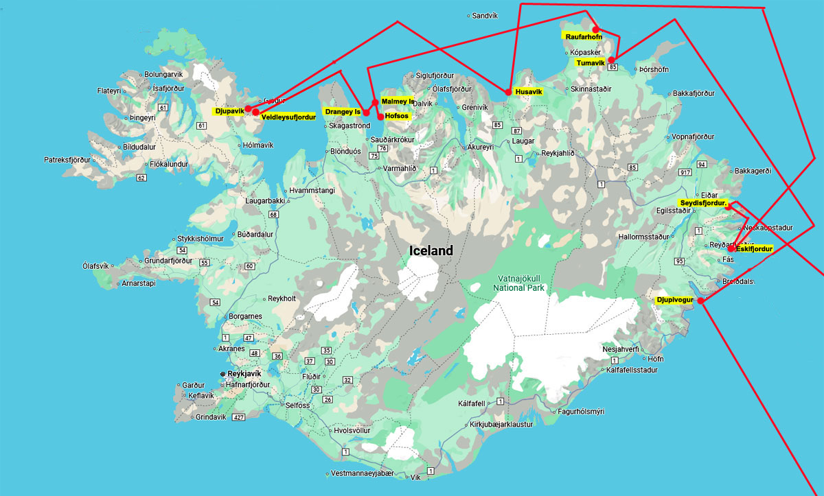 Dragney | This is a small, flat topped island near Hofsos. To reach the flat top involves, a series of vertical iron ladders, and steep, roped paths | |
