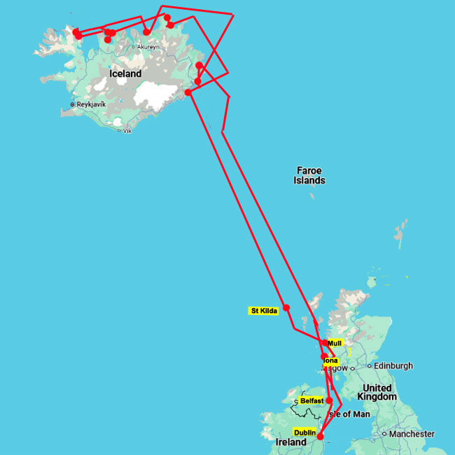 Ship departs Dublin | A wander round Dublin, then an Uber to the Silver Wind moored at North Wall. The usual first day briefings, including an introduction to the expedition leader, Werner from South Africa, and his team of 22 people We sailed at 18.15 |