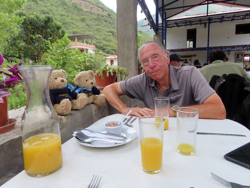 Sunday, January 12. Donna Lola‘s to Chachapoyas The hotel restaurant seemed much nicer at breakfast then it had the previous evening.This been due to now being on a larger table with colourful place mats and not a pub table. Breakfast was simple and the juice was very good. We had to wait for Alfredo for a few minutes and then proceeded the 20 minutes to the cable car depot: this was a very impressive building, seemingly ahead of its time. From here we boarded a bus for a three minute ride to the cable car start. We had a cabin to ourselves and really enjoyed the 20 minute ride over to the Kuelap ruins.