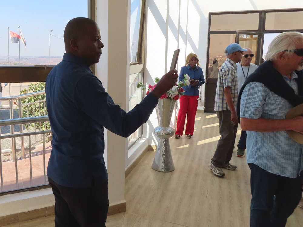 A 9 am start in Kuito where we boarded a bus which took us to the museum in a 15 minute drive. There I used a wheelchair to ease the pressure on my ankle and was driven around first by one of the waiters and then by David.