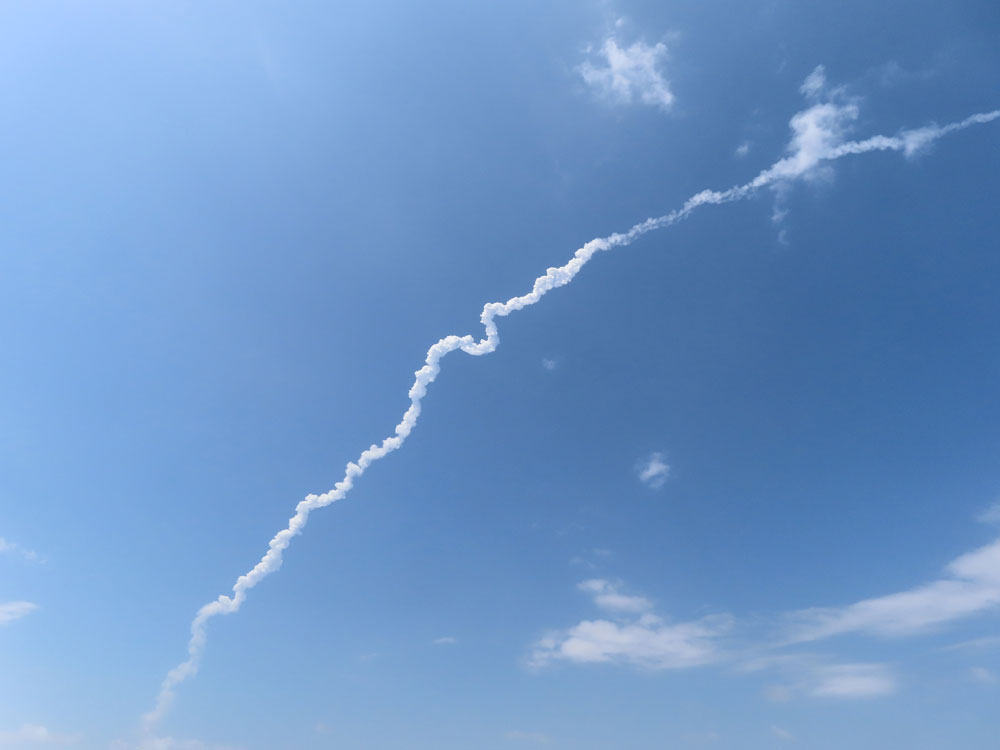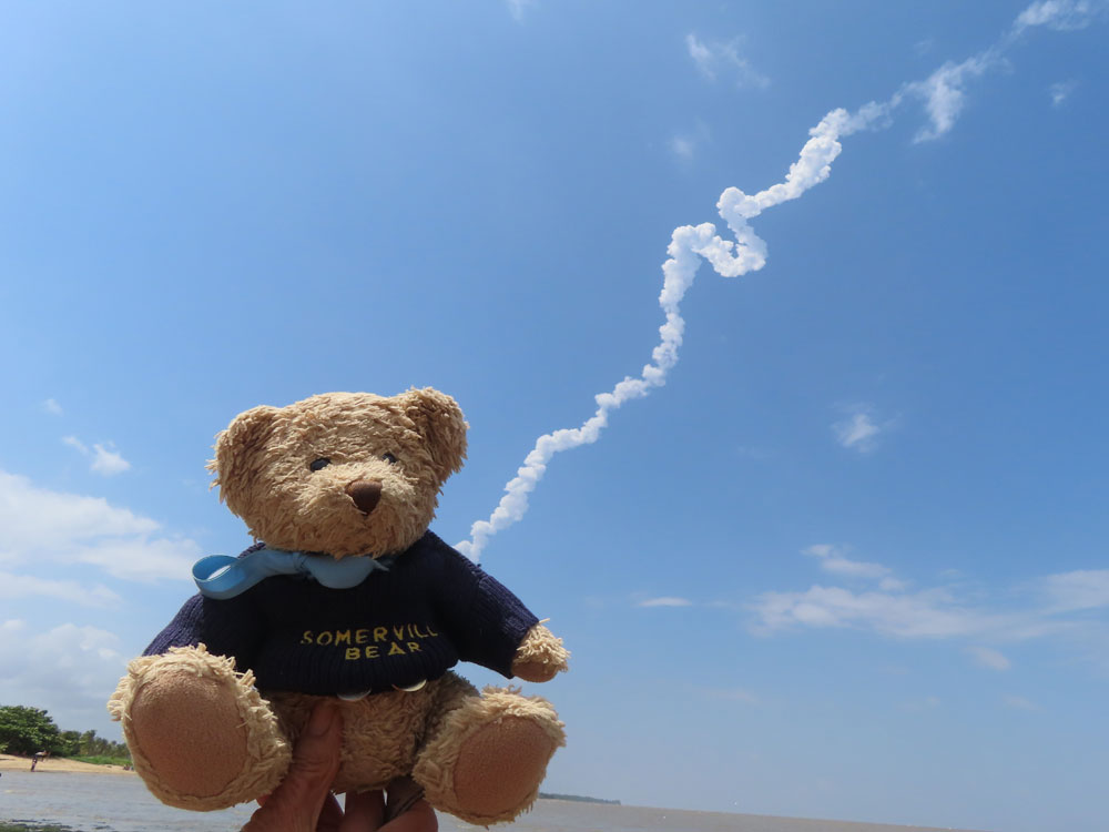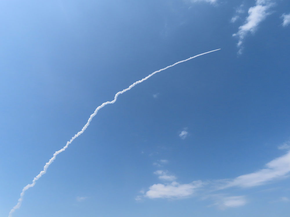 We were then driven to the beach where we sat down on the rocks to await the launch. This was quite spectacular against a bright blue sky and when the rocket seemed far above us the noise then reached this. It rose high into the sky, pouring our a very impressive white vapour trail behind it.