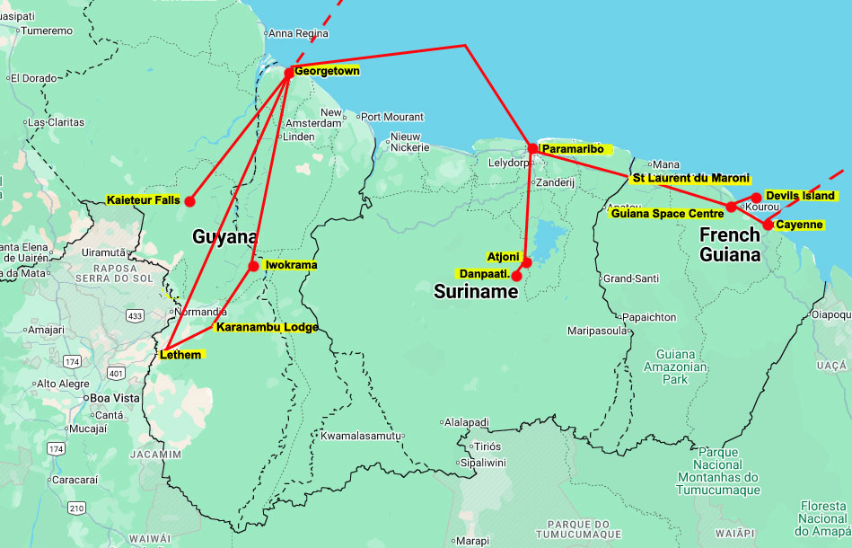 Sat Feb 14 | Cayenne | Quick tour of Cayenne, and a lunch in a very nice cafe Depart from Cayenne. AF 857 14 FEB Cayenne (CAY) to Paris 1835 - 0715 next day |