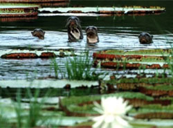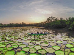 Wed Feb 04 | Karanambu | Drive to From Ginep Landing, board a boat for the trip along the Rupununi River to Karanambu. The surrounding landscape supports over 600 bird species, 200+ mammals and around 700 types of fish. Archaeological evidence also points to human presence here for more than 7,000 years. Reach the hotel. As dusk falls, the giant Amazonica water lilies begin to bloom – their luminous pads unfurling in the fading light. |