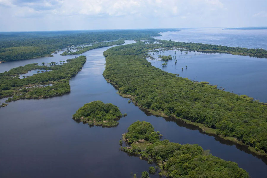 Annual flooding occurs in late northern latitude winter at high tide when the incoming waters of the Atlantic are funnelled into the Amazon delta. The resulting undular tidal bore is called the pororoca, with a leading wave that can be up to 8 m high and travel up to 800 km inland