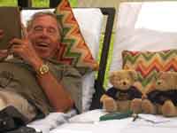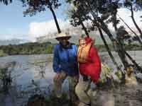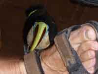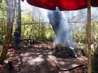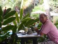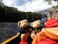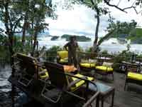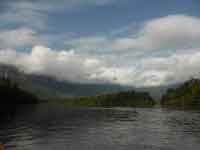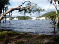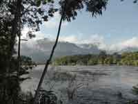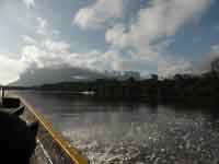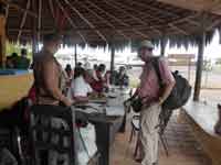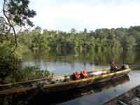 Back at the hammock camp, we did not want lunch, but the guide did. We were treated to chicken off paper plates and plastic cutlery. Back in the canoe, it was only 3 hours back to Waku, as we were with the current. One dicey moment on the way, where we thought that the canoe might tip in a rapid when it hit a submerged rock. We reached Waku just as it was getting dark. The hotel manager was very rude about our change of plan. He said our itinerary was nothing to do with the hotel, and that our travel agent must have made up the substantial errors in it. Eventually we came across a PR lady, Jenny, who did wonders to smooth over the problems. She read our itinerary, and accepted that it was not our fault - and we never did actually find out whose fault it was!.