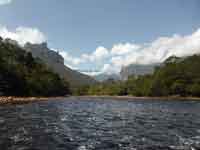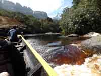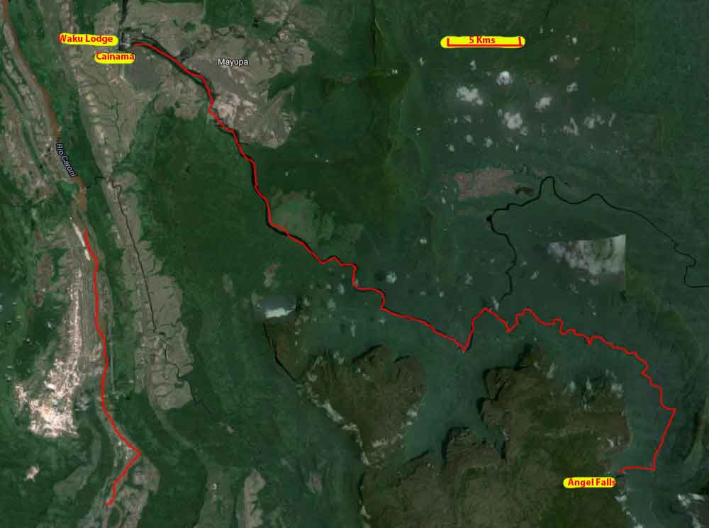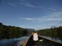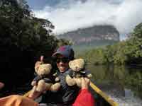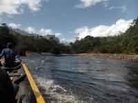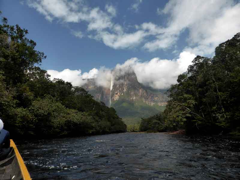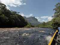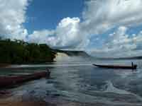 Nobody said that it would be easy to get to the Angel Falls, and indeed it proved to be a long, arduous, but worthwhile. journey. A flight from Caracas to Puerto Ordaz, then a small 19 seater turbo-prop to Canaima. And from Canaima, a 5 hour journey up river by canoe to the hammock base camp for Angel Falls: then an hour and a half difficult walk through the rain forest to the base of the falls. Then the same to return.