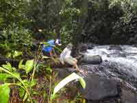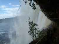 After a short discussion, Chris & I decided that we would opt to walk to the base of the falls straight away, then return by canoe to Waku that afternoon. This was only accepted by the hotel with very bad grace. Anyway the walk to see the base of the falls was an hour and a half each way, through difficult terrain. Difficult as the path was over surface roots the whole way, and over an uphill route. The sun had gone from the falls, so the photos are not as good as the earlier ones from the canoe. Chris was just about all in by the time we finished the walk.