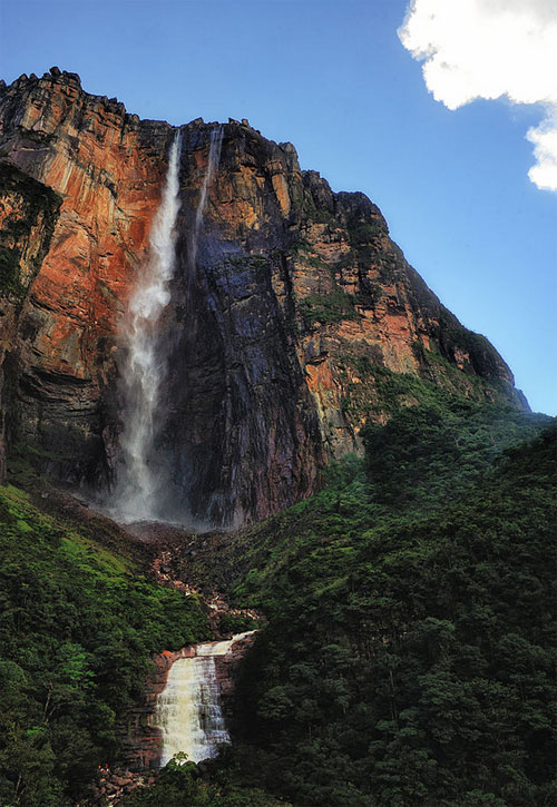 From Ciudad Bolivar in Eastern Venezuela, Angel began a series of exploratory flights southward in his single engine aircraft. On one of these flights he abruptly came upon the amazing Auyantepui that rises thousands of feet above the savanna. A circular tabletop mountain, it is practically unscalable. Angel began to fly around the giant mesa when he found the falls. Because his fuel supply was low and because clouds made flying hazardous, he was forced to return promptly to his base. But the discovery of: the cataract left him dazzled. He returned to Caracas to tell of his find. "But no one would believe me," he wrote. "They thought it impossible that there could be a fall one kilometre in length".