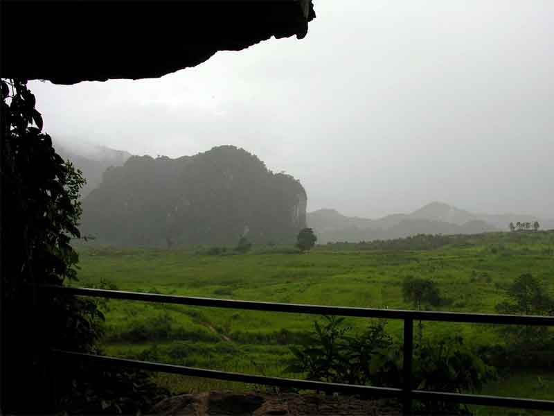 Looking out from the main anti-aircraft position in the caves, you can see a typical morning in this part of Laos - "No American aircraft today"