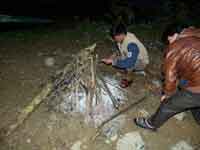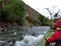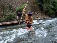 Having said that, the overnight safari is a really nice visit to the wilds of Laos. You journey upriver for several hours to a permanent overnight camp - the former village before the villagers got moved down to the main road area. Our trip was not without a frisson of excitement when the propeller sheered off on a rock, and the boatman had to wade the icy water to recover it, then bang it back on to the prop shaft.