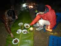 There you have a number of activities, like spotting animal foot-prints in the mud at a salt lick, and a night boat trip down-river in silence with the engine off- game spotting by the light of the guide's torch - we saw a few deer and a number of smaller animals, which was better than par for tourists. Our spottings did include a Linsang which seems endemic to this part of Laos