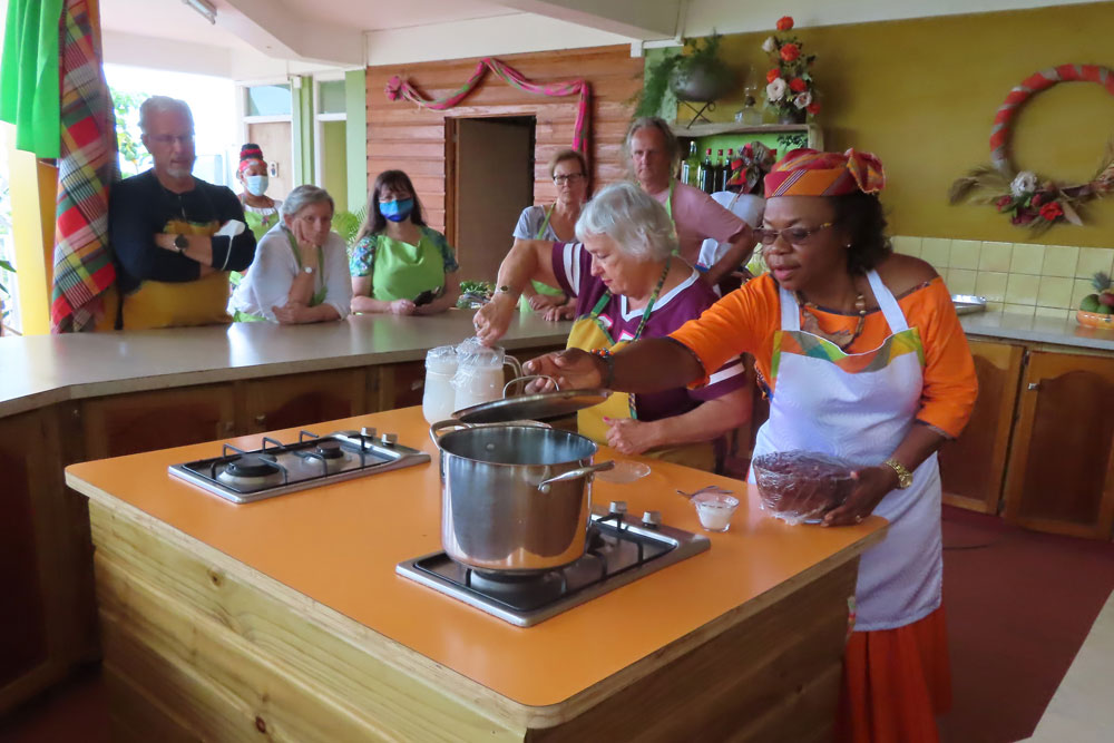 We enjoyed a few hours with Cooking Caribbean, an outdoor culinary adventure that introduced us to the flavours, traditions, spices and seasonings of the island. After a short 20 minute drive through the lush landscapes we arrived at a local home, were greeted by the family and introduced to their herb garden where many ingredients are grown. During this 3 hour experience we worked alongside the lady chef/owner to help prepare the meal, understand the history of the ingredients along with the traditional way of preparing the meals. At the end of the cooking session we sipped her varied selection of rums, ate the delicios dishes that had been prepared . whilst listening to the sound of creole folk music and watchimg dancers all dressed up in their national wear.