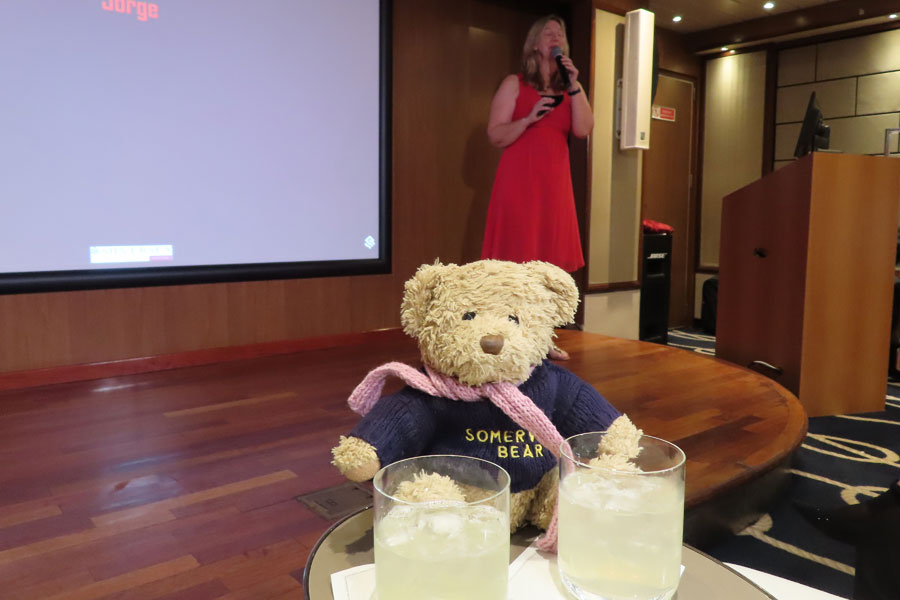 The ship sailed before 18.00 and we watched from the back deck with our first pisco sour of the day. Attended the Captain's Welcome party. After another pisco sour and tapas before dining with Robin & Philippa