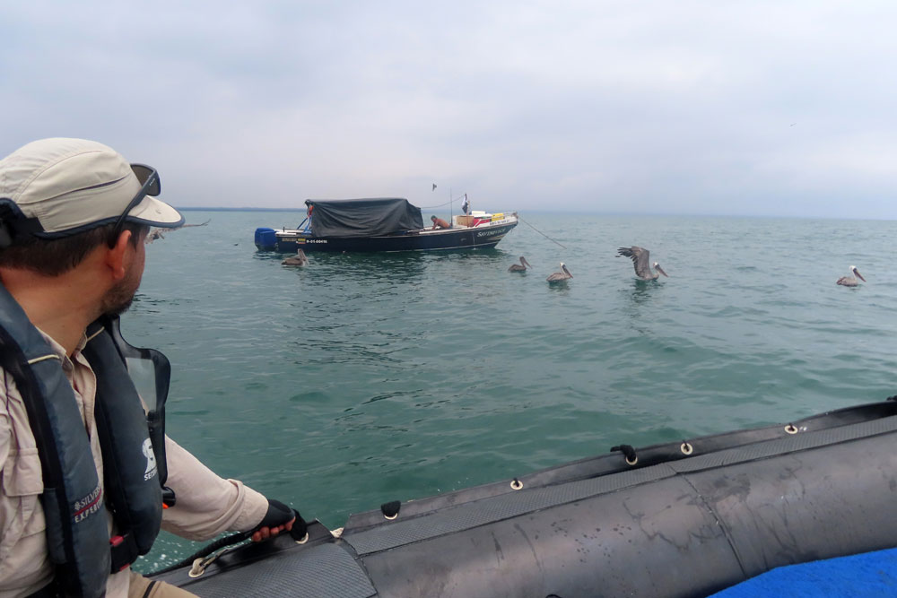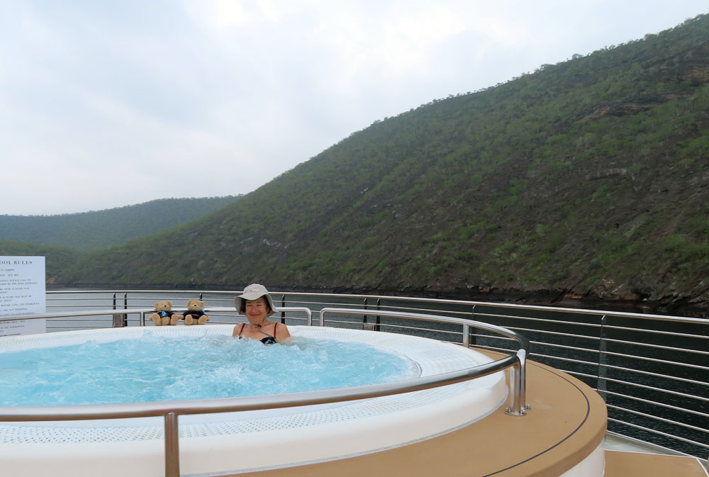 At 3 o’clock, we went out on a zodiac ride through the mangroves with Javier. This was most enjoyable, tranquil, and we saw penguins, sea, lions, rays and pelicans. We started off in really heavy rain, but that soon ended.