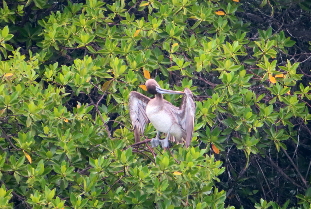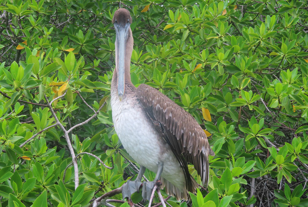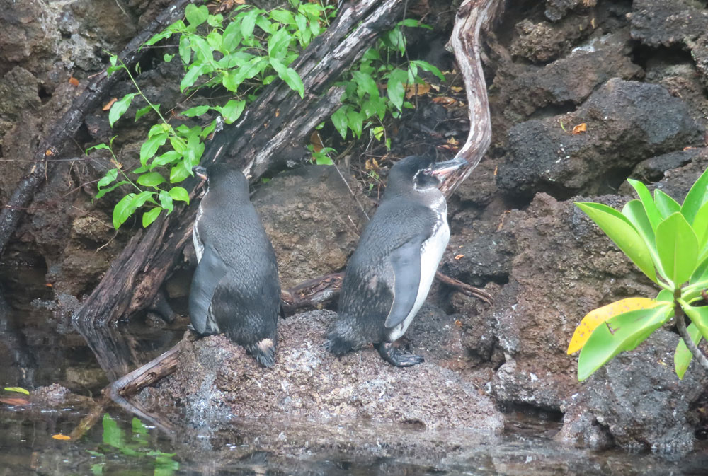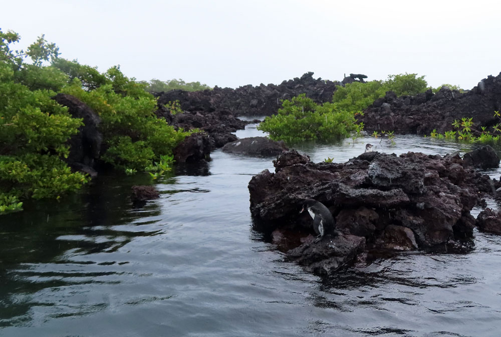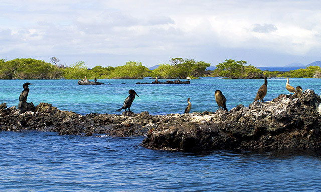 Different animals prefer different parts of Elizabeth Bay. Las Marielas, three rocks at the entrance to the bay, are favoured by Blue-footed Boobies, Flightless Cormorants and Galapagos Penguins as a resting place, while the mangrove area is preferred by Great Blue Herons for hunting or the Magnificent Frigate birds for perching.