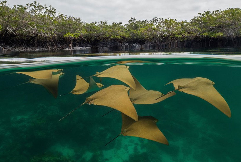 Elizabeth Bay is one of the marine sites on Isabela’s west coast. South of Alcedo Volcano and north of Sierra Negra, It is found at Isabela’s narrowest east-west extension where the lava flows of these two volcanoes have connected each other. Elizabeth Bay’s shores show mangroves and specifically the easternmost part, a cove which can only be entered via a narrow channel, has red, white and black mangroves.