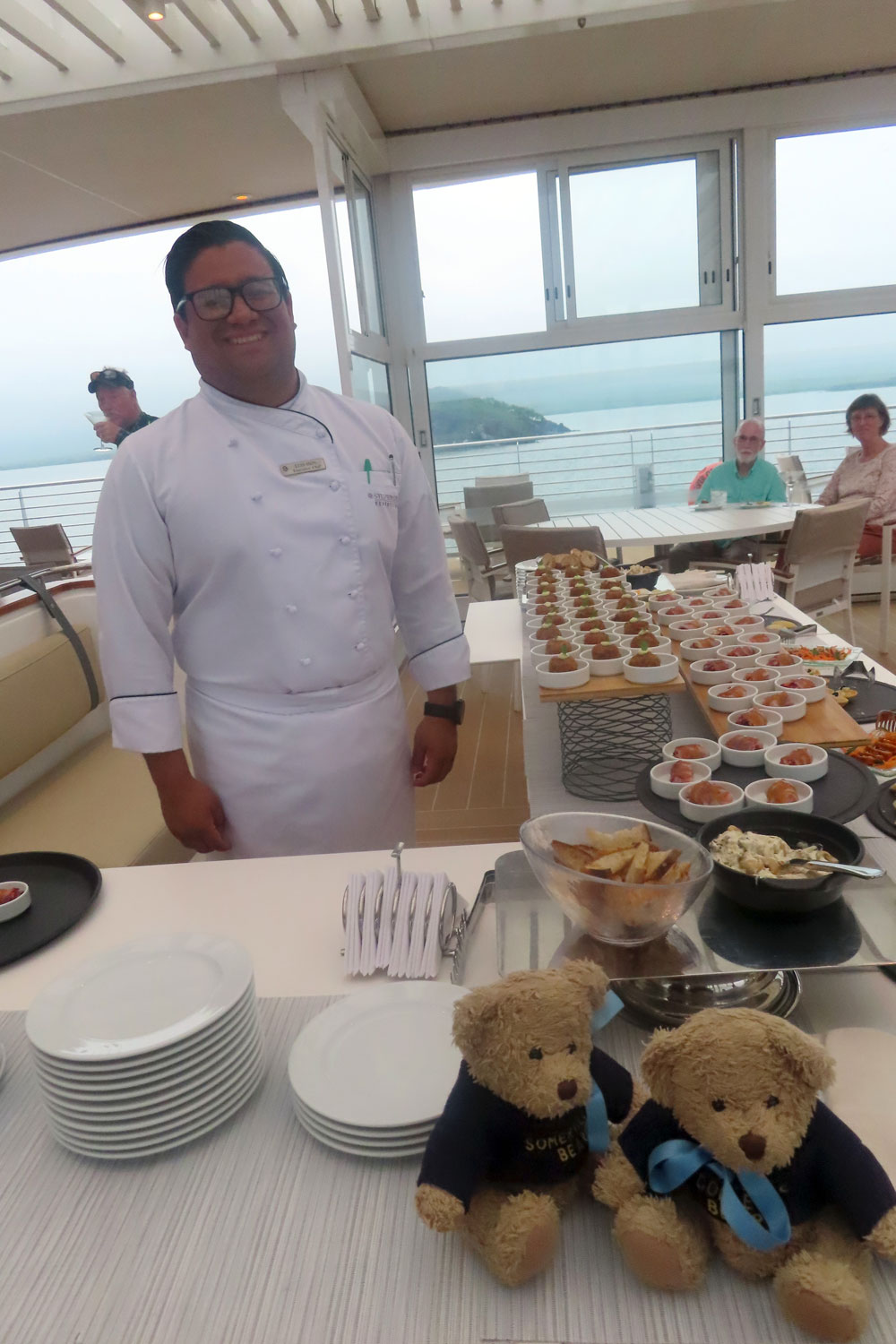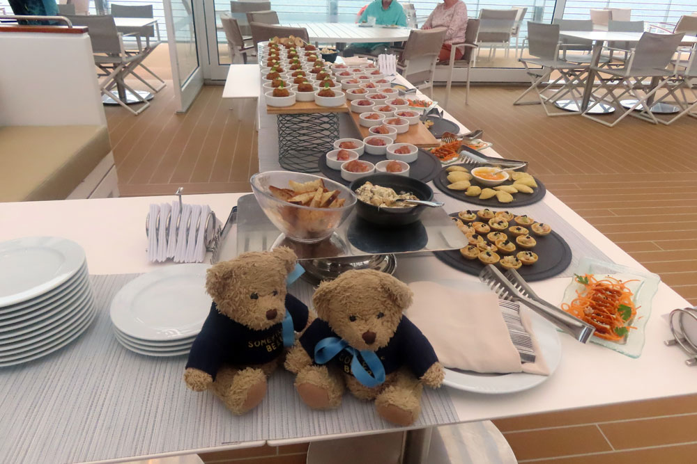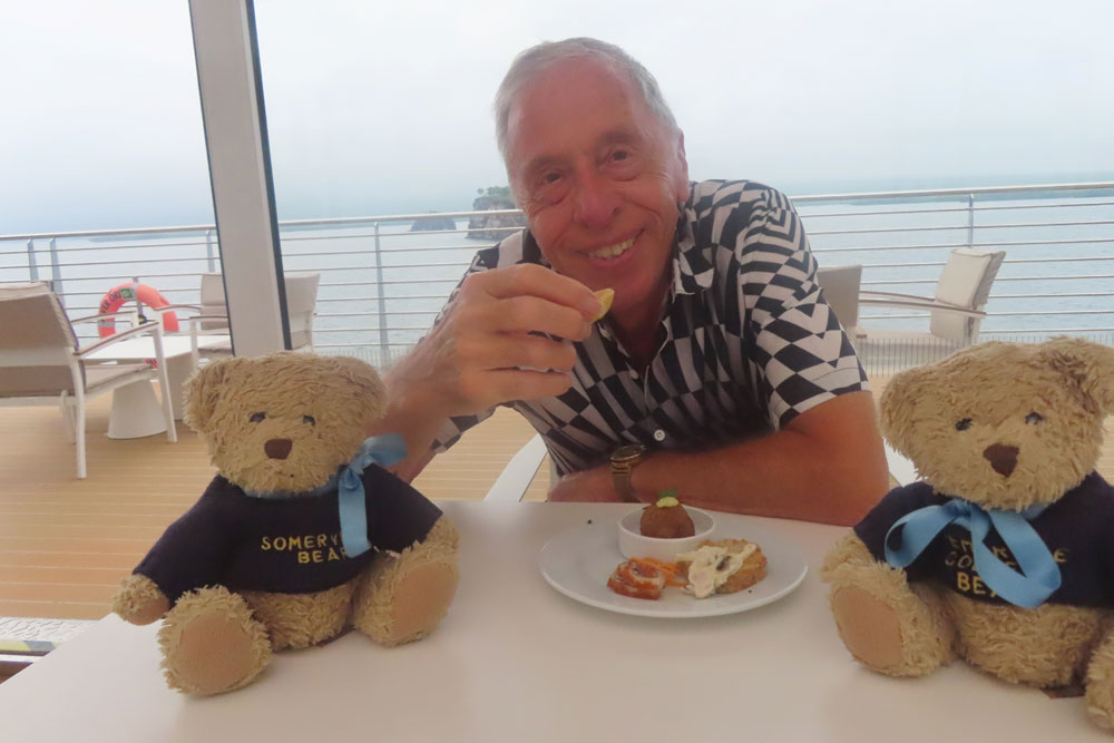 Once back aboard there was a cocktail party on deck seven at 5:30 with very good nibbles. Before this we had already had the customary tapas that the Butler delivered to us each day in the cabin.