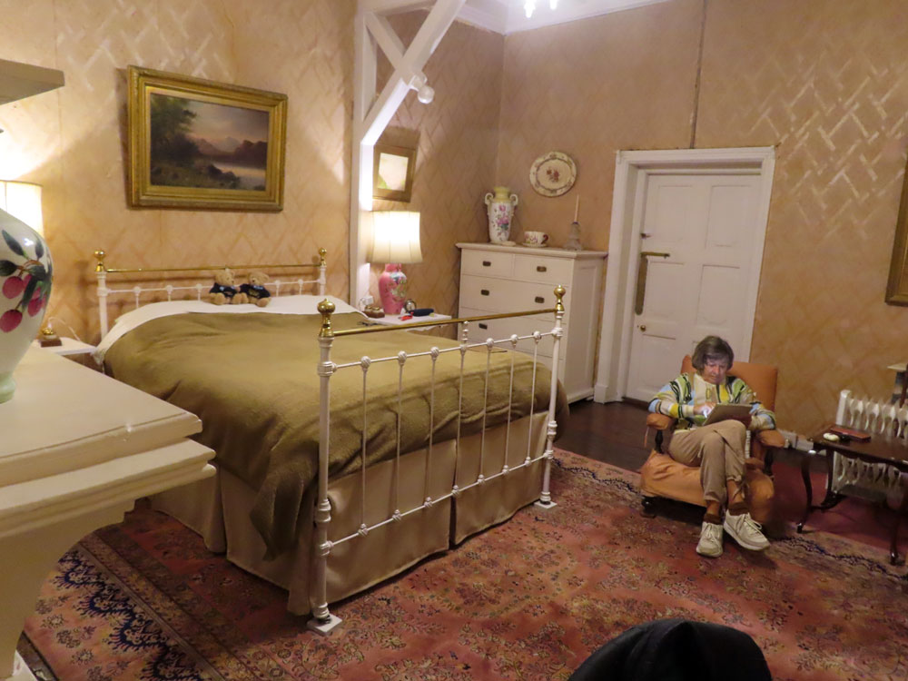 A new guide, Mr. Push, was picked up on the outskirts to the city and we then took a back road to avoid some of the traffic and eventually arrived at Chapslee House, and were greeted by 4 or 5 staff and showed to our room by a lady who I think was the hotel manageress. The whole place was just as it had been 100 years ago, very dated. Our room had a dressing room and then a bathroom with quite antiquated fittings and no view whatsoever. We were informed that dinner would be at seven but we’re not asked what we wanted. At 6:50 pm they knocked on our door to say dinner was ready but there was nobody in the dining room when we got there. Eventually, two others, Martin and Jerry, appeared and then food appeared silently with no indication of what it was and seemingly very little English on the part of the two male spooks that were serving it. Chris was not impressed but she did like the pancakes that they served for pudding and got them to make some more and all the other three also had some more. We then had some coffee in the room next door to the dining room in order to prolong the stay outside our bedroom. When we went to bed, there were two other people eating in the other side of the dining room, presumably the family? We shall consider how spooky it appears in the light of day tomorrow morning.