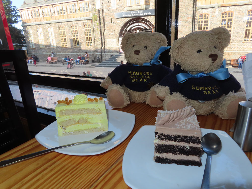 Then we had a two hour drive back to Simla, one whole hour is this being spent in a stationary traffic jam, so that was far from excellent. Once in Shimla we were dropped at the base of a lift and took two lifts up to the other end of the Mall, which we had not visited the previous day. Then a walk along past surprisingly modern shops until we got to the theatre where we entered and listened to a description of its history: this woke me up again and was very interesting, the first play ever produced their was by Rudyard Kipling and he actually acted in it as well. Then we stopped at the café and had a mango and almond shake and two gooey cakes which the boys thoroughly enjoyed. Then onwards to to the Ridge where we were able to enter the church and see its stain glass windows.