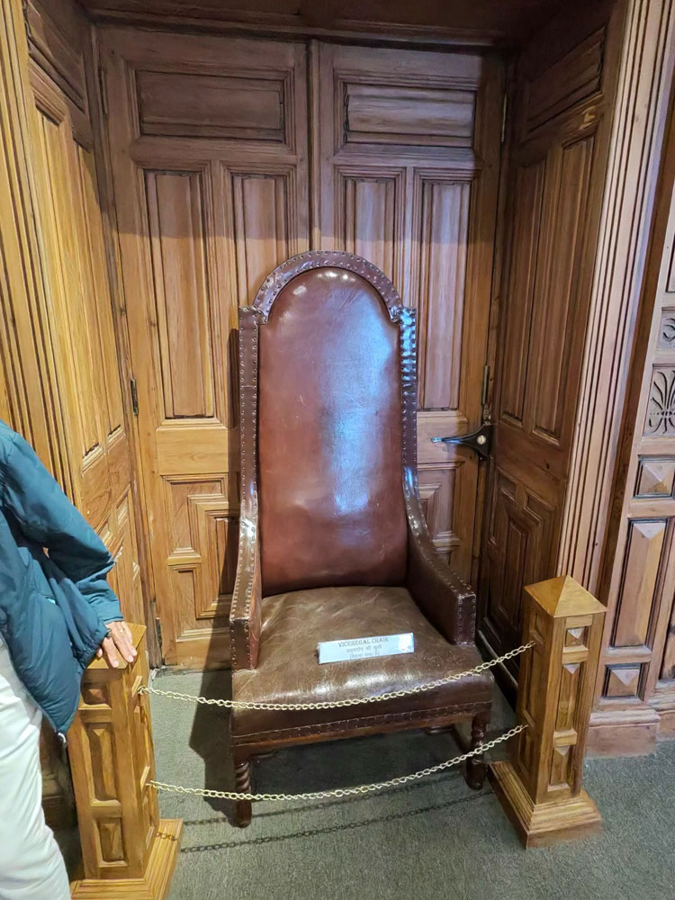 After dinner Mr Singh (the current maharaja), who had inherited the house in 2018, his grandfather ( Raja Charanjit Singh of Kapurthala( had bought it in in the late 1800s) At first it had just been a summer house for them. But when nationalisation seemed eminent after independence they found they had to stay here permanently and create a reason for doing so in order to avoid being taken over by the state. This started by establishing a nursery school with just three children at the time. This explained the fact the two aspects of the house have been destroyed by later extending that school to 800 pupils. Another interesting fact we learnt with the Chapslee house which was once called the Secretariat , was the venue where the disastrous Afghan war was planned which resulted in just one man and a horse returning from Kabul. After his talk, he showed us round the ground floor of the house which was also quite interesting.