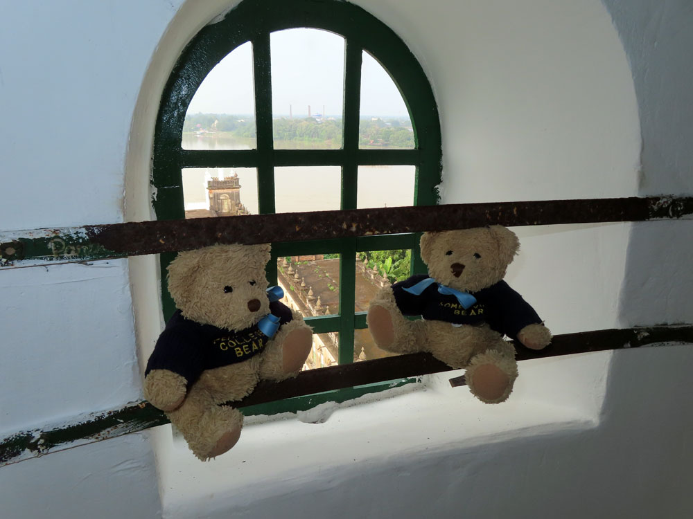 After lunch we set off again at 3 pm, the ship have moved about 10 km downstream during lunch. We visited a mosque, Imambara at Hoogley, and Chris climbed the 152 steps to the top of a tower, well looked after by Joe and Maureen whilst David climb the men’s tower with Titu, the separation of the sexes being mandatory. On our descent we inspected the.hammam Columba, which was for the use of the priest.