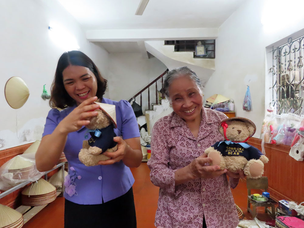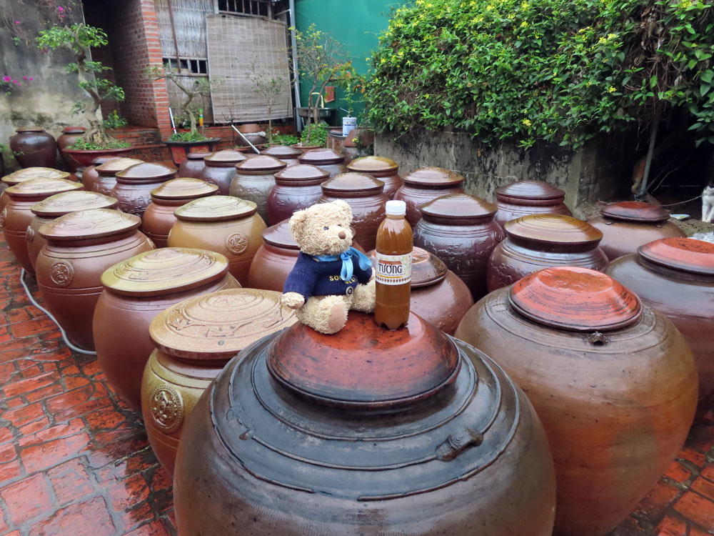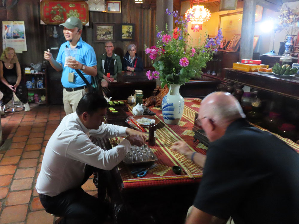 We made a stop at a small village dedicated to the handmade production of Vietnam’s most famous headwear, the Non La conical hat before continuing to Thay Pagoda. Hardly known, yet with exquisite temples dating from the 11th century, we visit this beautiful temple beside a lake and explore the village that surrounds the pagoda. We received peanut goodies and tea and saw how these traditional hats were made and were each given one at the end. We chose to have two small ones for the Teds rather than normal size ones for ourselves.