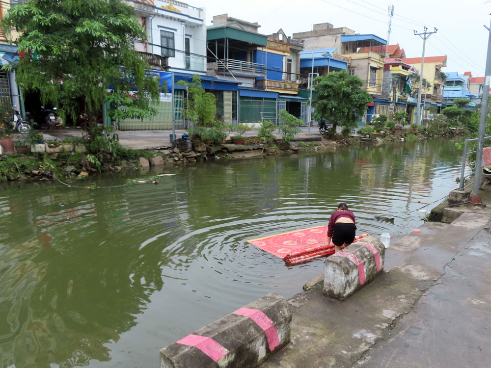 Along the Red River en route to Ha Long Bay We went by bus to Co Chat Village which was known for its production of silk .