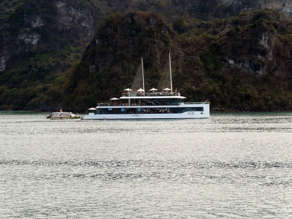 After lunch the boat soon entered Ha Long Bay haing passed by the city of Haiphong, which was full of shipyards on one side and an absolutely immense new construction city on the other side of the river. It looked as though it would house at least 100,000: the guide just said that these flats and houses were being bought for investment, seemed odd.